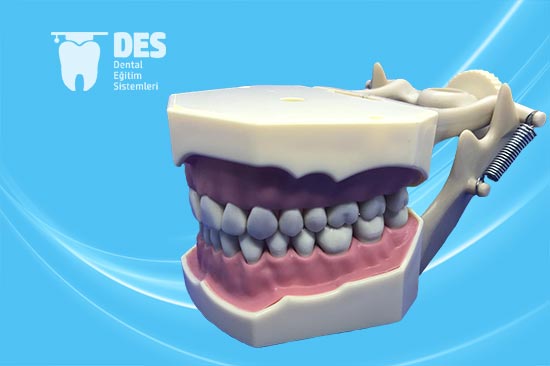 Bir yetişkinin tabii ve tipik diş dizisine uygun olan çalışma modeli: Sert ve deforme olmaz plastikten olup üst ve alt çeneler stabil bir çiğneme yüzeyinde oklüde olurlar.