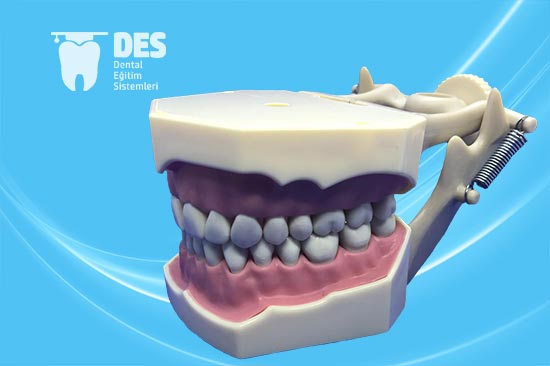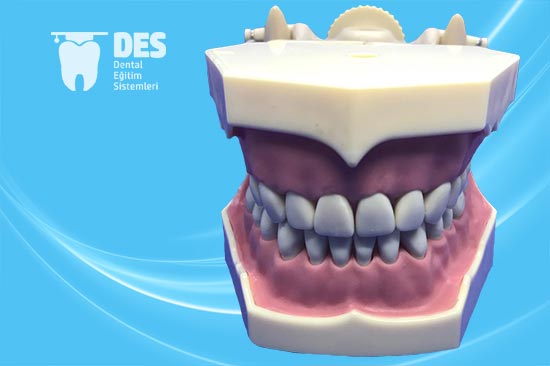 Bir yetişkinin tabii ve tipik diş dizisine uygun olan çalışma modeli: Sert ve deforme olmaz plastikten olup üst ve alt çeneler stabil bir çiğneme yüzeyinde oklüde olurlar. Fantom kafalara tutturmak için termoplastan yapılmış çene, vidalı dişler
