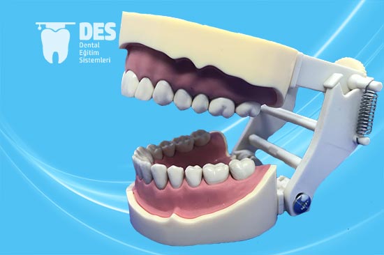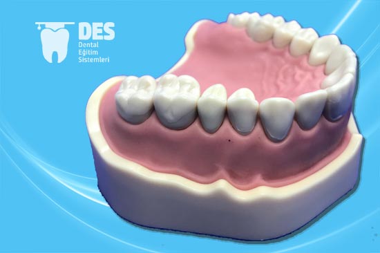 Bir yetişkinin tabii ve tipik diş dizisine uygun olan çalışma modeli: Sert ve deforme olmaz plastikten olup üst ve alt çeneler stabil bir çiğneme yüzeyinde oklüde olurlar. Fantom kafalara tutturmak için termoplastan yapılmış çene, vidalı dişler